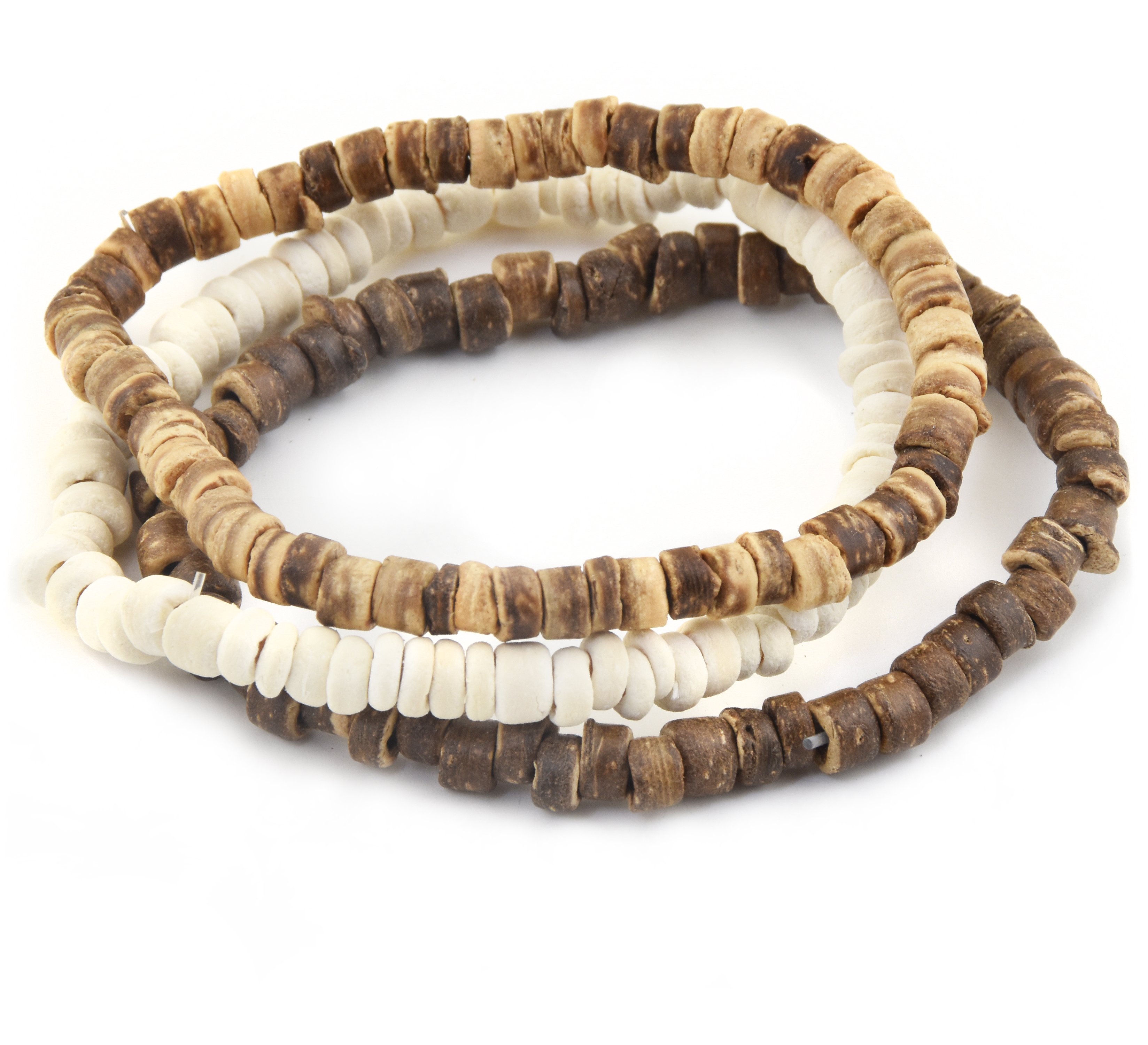 Bransoletki mogą nieznacznie różnić się od tych ze zdjęcia — to efekt naturalnej struktury kokosa oraz różnic w wyświetlaniu kolorów na ekranach.