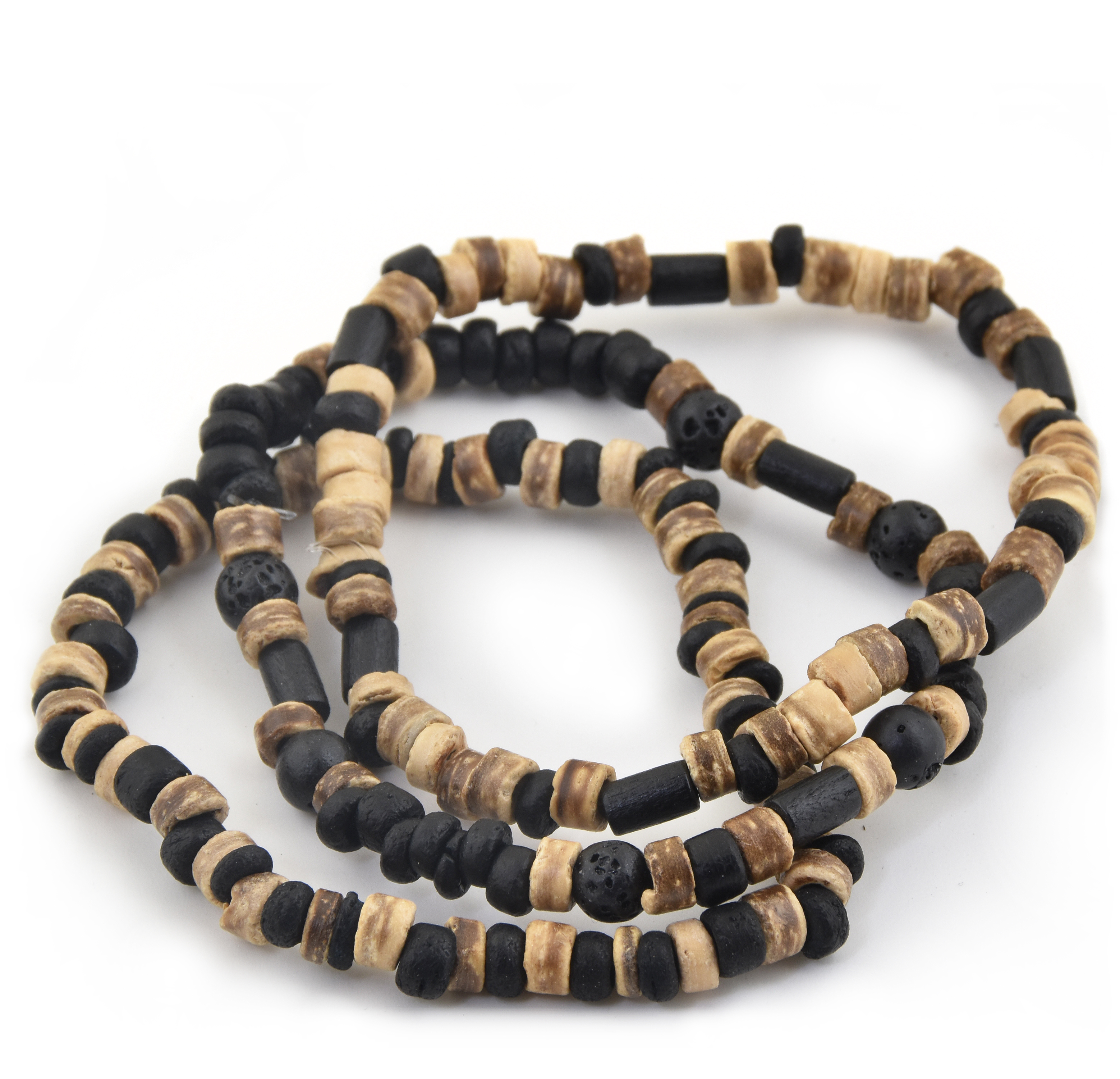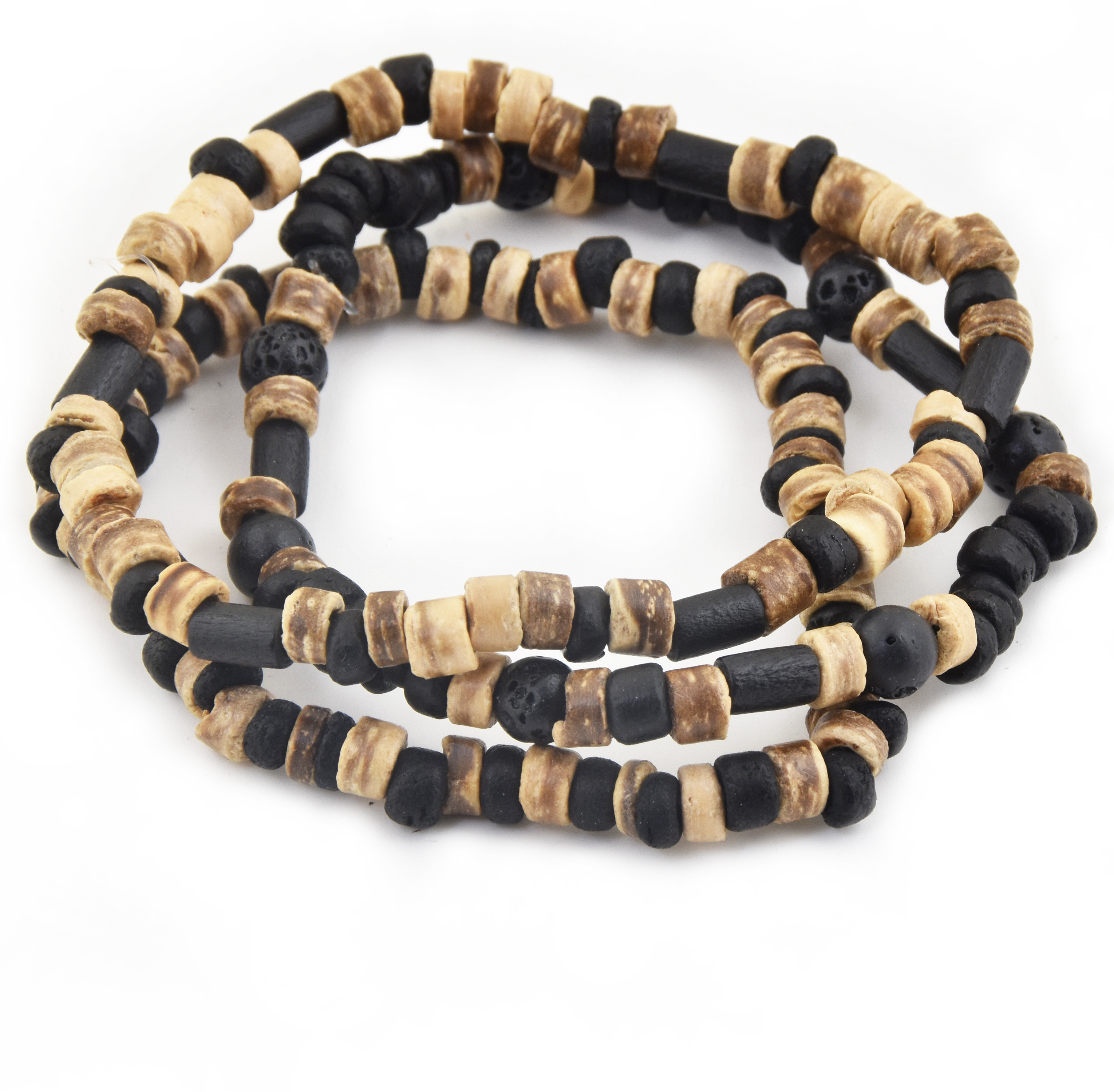 zestaw: 3 bransoletki (kokos + czarne drewno + tuf wulkaniczny)