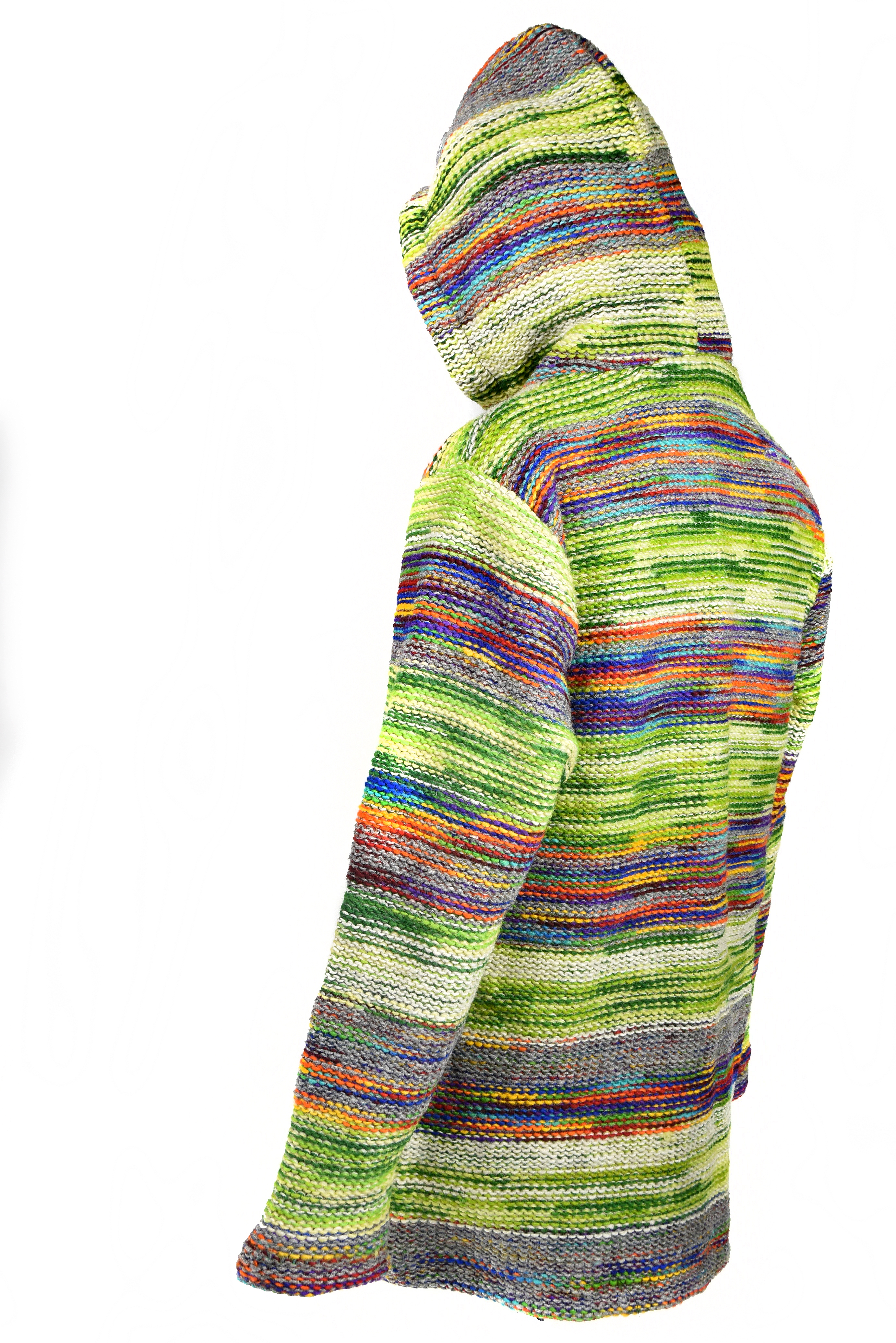 Sweter który prezentujemy pochodzi z Nepalu. Został uszyty przez lokalnych krawców z wełny pochodzącej z Nowej Zelandii farbowanej w nepalskich farbiarniach.