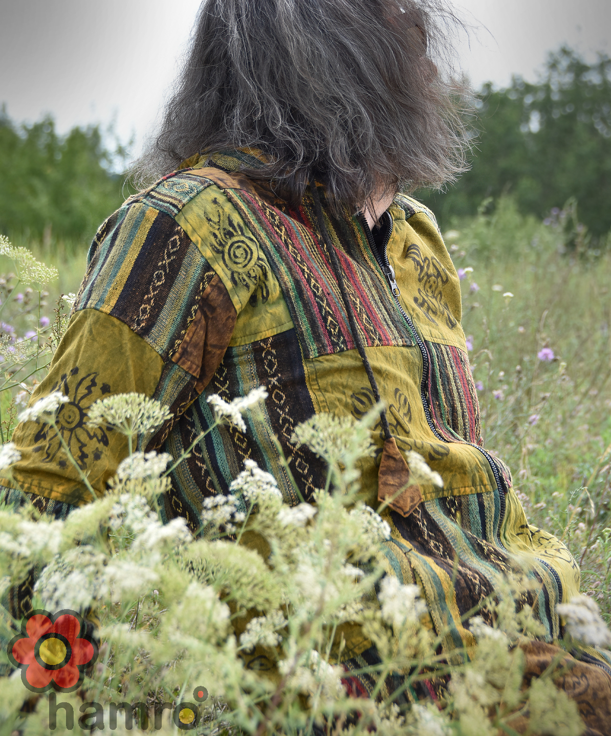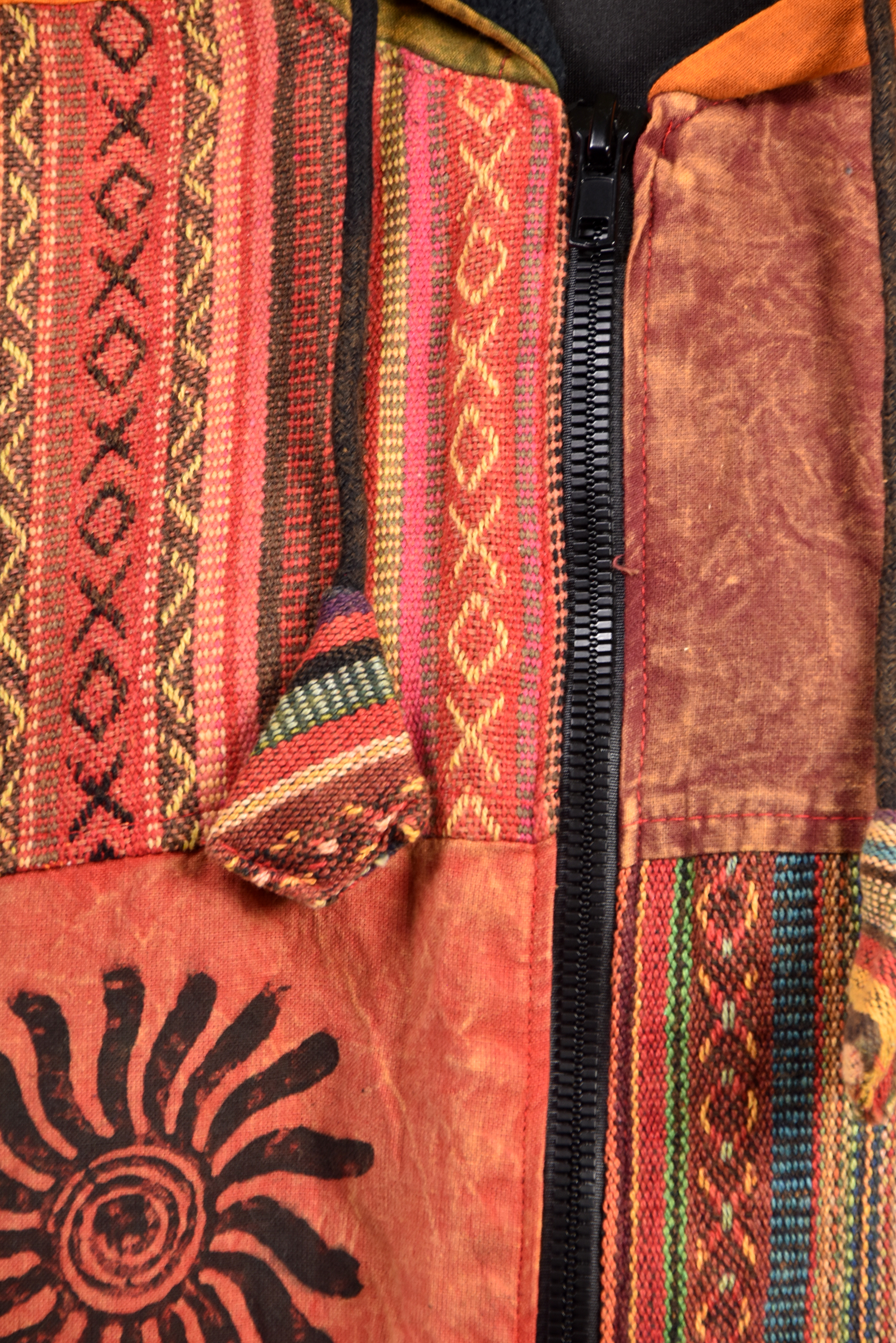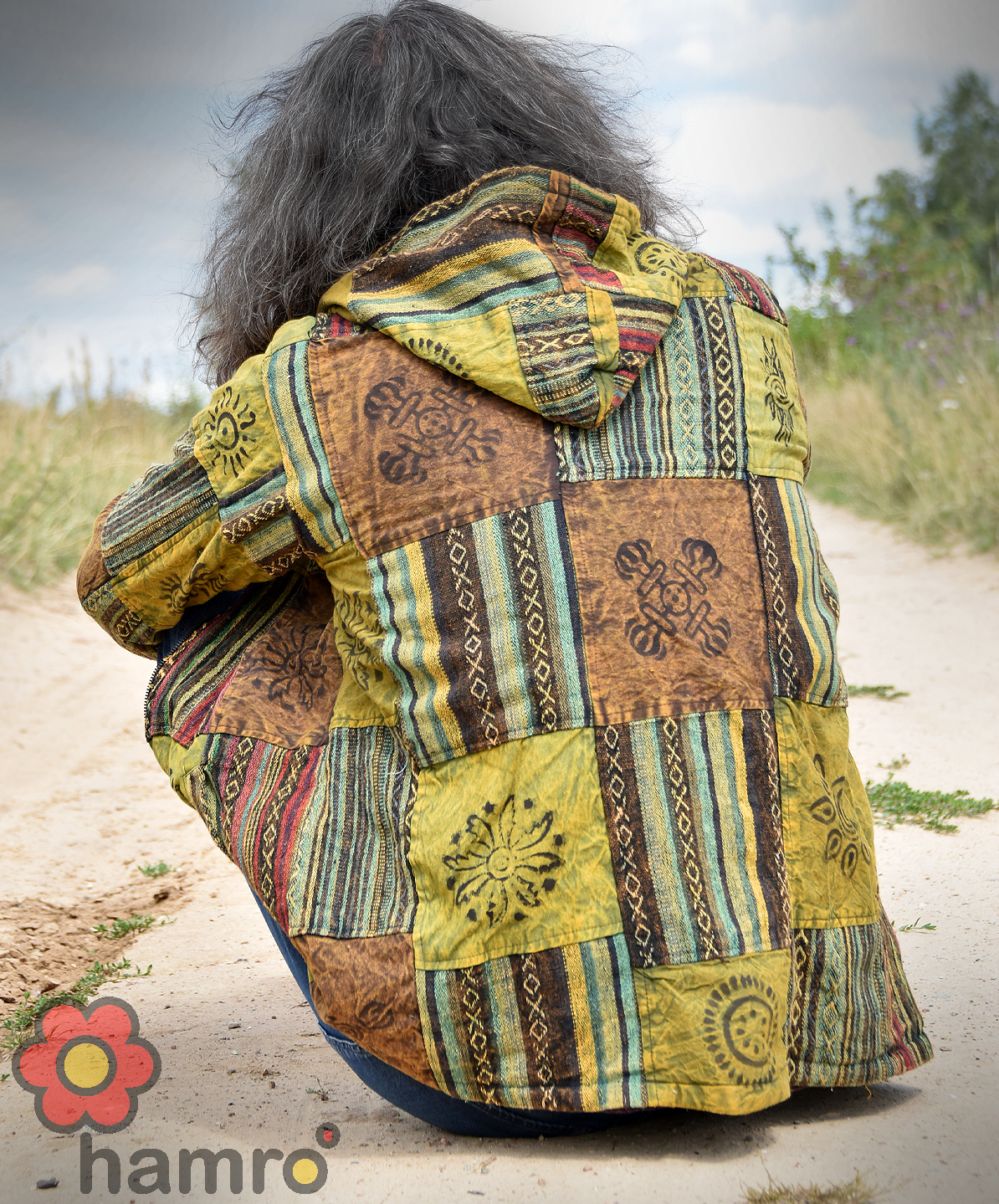 Oto bluza, której historia sięga głęboko do serca Nepalu. Wykonana przez lokalnych krawców, każdy szew nasycony jest tutejszym kunsztem i troską. Jej wierzchnia strona, złożona z różnokolorowych kawałków tkanin, stanowi unikalną patchworkową mozaikę. To nie tylko odzienie, to ekologiczna opowieść o ponownym wykorzystaniu materiałów - każdy kawałek to pozostałość po innych ubraniach, które teraz ożywają w nowej formie.