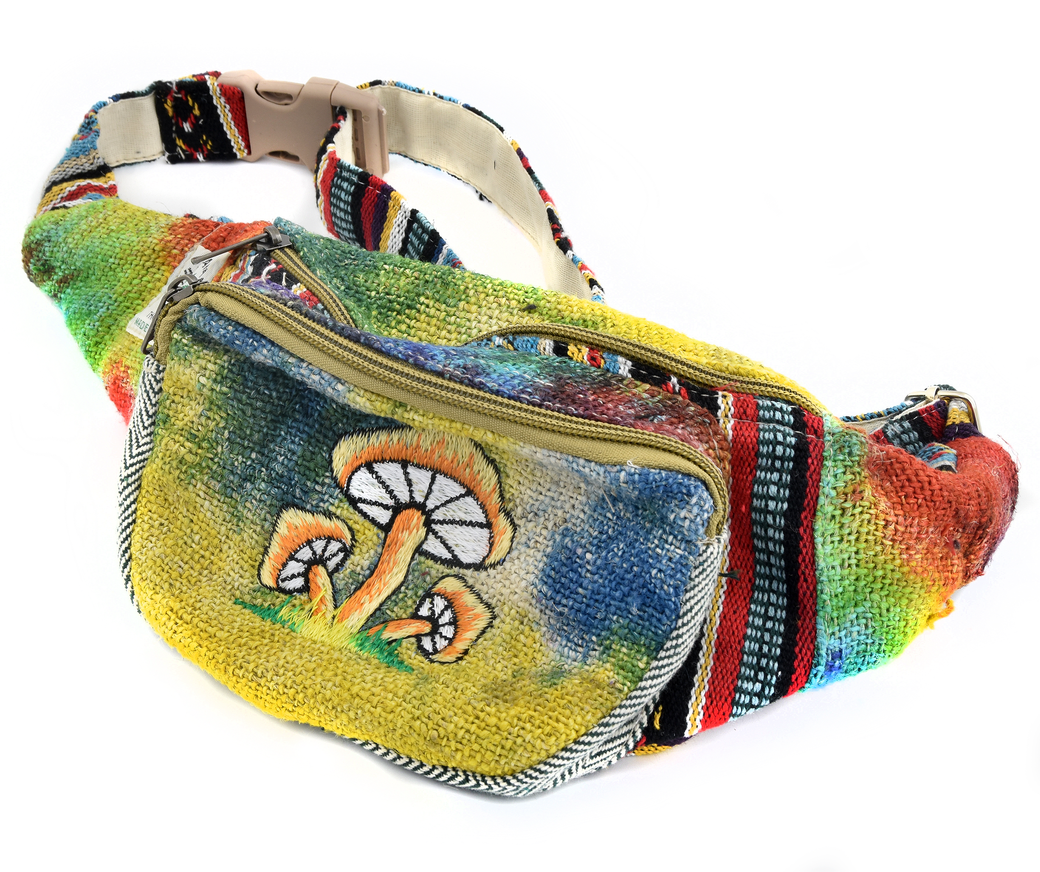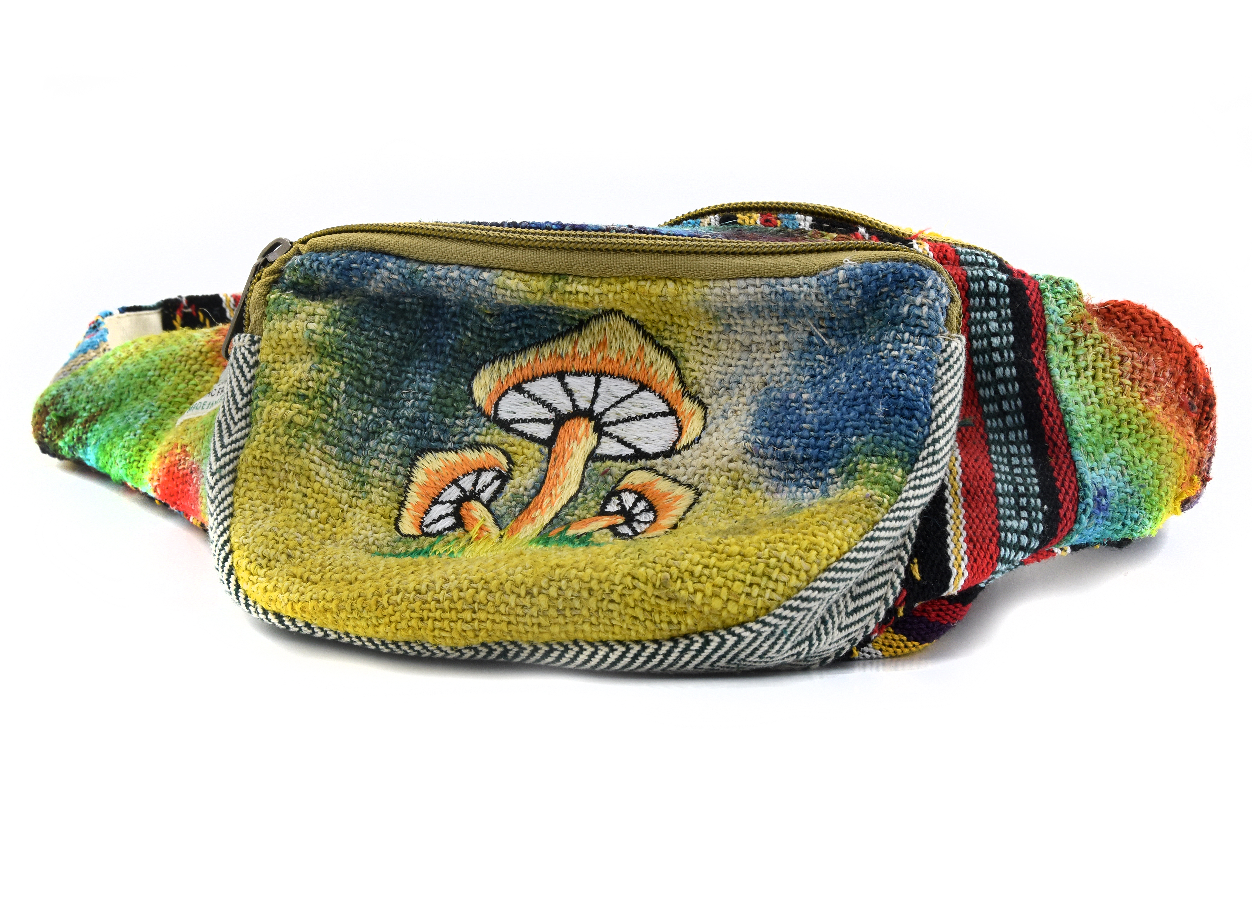 Nerka, którą oferujemy jest bardzo funkcjonalna z uwagi na ilość kieszeni do wykorzystania. Poza tym jej intensywne kolory przyciągają wzrok i z pewnością dodadzą fantazji każdemu stylowi.Składa się z pojemnej głównej komory zapinanej na osobny zamek, kieszeni od strony ciała również zapinanej na zamek oraz zewnętrznej mniejszej kieszeni na przodzie zdobionej charakterystycznymi grzybkami. W środku głównej i od strony ciała kiszeni wszyta jest czarna podszewka. Pasek wykonany z materiału gheri i czarnej podszewki ma regulowaną długość, zapinany plastikowym zatrzaskiem.